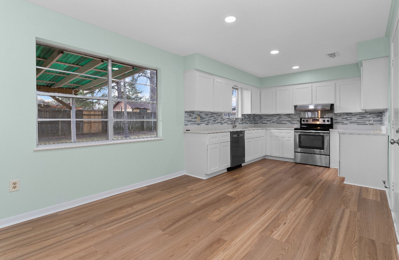 Welcome to this completely renovated 3-bedroom, 2-bathroom home in Lufkin that is simply breathtaking. With a delightful array of features, this charming residence is bound to captivate. As you step inside, you'll be greeted by a beautifully revamped interior featuring brand-new flooring, creating a contemporary and inviting atmosphere. The open-plan layout seamlessly connects the living, dining, and kitchen areas, ideal for both entertaining guests and enjoying quality time with family. The kitchen is adorned with stylish stainless steel appliances, adding a touch of elegance to your culinary experience. Enhanced with a fresh coat of paint, the tiled backsplash and pristine white cabinetry make this kitchen a cook's paradise. Stay cozy throughout the year with the central heating and cooling system, ensuring optimal indoor comfort regardless of the weather. Outside, a covered patio awaits, overlooking the fenced backyard for a private outdoor retreat, perfect for relaxation or hosting gatherings. This home truly embodies a blend of sophistication, practicality, and coziness. Don't let this opportunity slip away—reach out today to discover more about this highly desirable property in Lufkin and secure your place in this sought-after neighborhood.